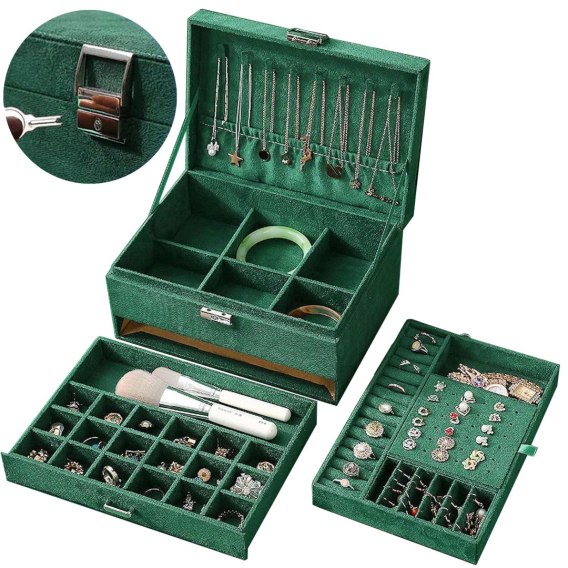 Szukasz idealnego prezentu, który łączy elegancję i funkcjonalność? Szkatułka na biżuterię Malwa jest tym, czego potrzebujesz. Posiada wiele miejsca na kolczyki, pierścionki, wisiorki, broszki, zawieszki itp. Wykonana z najwyższej jakości materiałów, w tym z przyjemnego w dotyku materiału zamszowego, stanowi nie tylko praktyczne, ale i estetyczne uzupełnienie każdej przestrzeni. Ta elegancka szkatułka, zamykana na kluczyk, zapewnia bezpieczeństwo i prywatność Twoich drogocennych przedmiotów. Na dole znajdziesz wysuwaną szufladkę z wieloma przegrodami, zaprojektowaną tak, aby pomieścić różnorodną biżuterię. Po otwarciu szkatułki ujawnia się przestronne wnętrze, które z łatwością pomieści Twoje skarby. Dodatkowo, po wyjęciu wewnętrznej przegrody odkryjesz jeszcze więcej miejsca dzięki kolejnym 6 dużym przegrodom. Szkatułka Malwa to nie tylko świetny sposób na przechowywanie biżuterii, ale również wyjątkowy prezent, który z pewnością ucieszy każdego obdarowanego. Nie przegap okazji, aby sprawić komuś lub sobie wyjątkowy prezent - wybierz szkatułkę na biżuterię Malwa.
