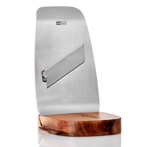 Stworzona do cięcia niezwykle cienkich plastrów trufli lub twardego sera. Jej ostre jak brzytwa, w pełni regulowane ostrze, pozwala ciąć ekstremalnie szybko i cienko. Jej ergonomiczny kształt zapewnia wygodne dopasowanie do dłoni. Elegancka drewniana podstawka służy jako miejsce przechowywania tarki oraz jako deseczka do odłożenia sera lub trufli. Nie należy myć w zmywarce. Produkt został zaprojektowany przez AdHoc Design Team. Materiał: stal nierdzewna, drewno akacjowe. Wymiary tarki: szerokość - 9,3cm, wysokość - 17cm. Wymiary z podstawą: szerokość - 9,5cm, wysokość - 16,5cm.