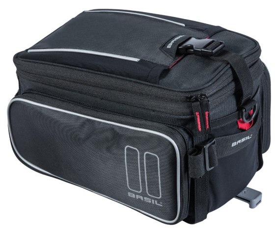 Basil Sport Design MIK to przestronna torba bagażowa o pojemności 7-15 litrów. Torba jest wyposażona w różne przegródki, które można otworzyć za pomocą zamka błyskawicznego, dzięki czemu możesz stworzyć więcej miejsca na swoje podstawowe rzeczy. Torba jest wyposażona w adapter do montażu na bagażniku - MIK Adapter Plate. Kosz z wstępnie zamontowaną płytą adaptera można łatwo wpiąć w bagażnik kompatybilny z systemem MIK lub w podstawkę do bagażnika - MIK Carrier Plate (osobno do kupienia BAS-70170). Odpinany pasek na ramię umożliwia wygodne noszenie torby na ramieniu, gdy nie jeździsz na rowerze. Górna obudowa jest wykonana z czarnego poliestru i dlatego ma gładki, współczesny wygląd, a wewnętrzna podszewka ma efektowny czerwony kolor. System MIK sprawia, że ??torba nadaje się do prawie każdego roweru, w tym rowerów elektrycznych. Torba posiada elementy odblaskowe ze wszystkich stron, dzięki czemu jesteś bardziej widoczny w ciemności.