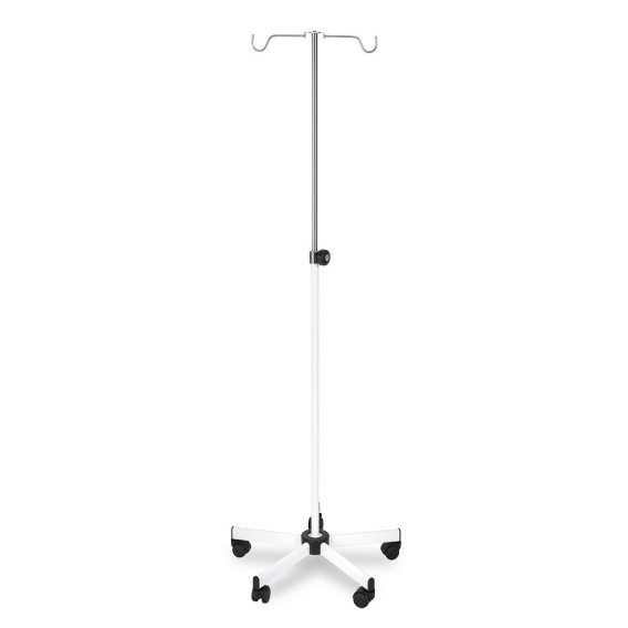 Stojak dla kroplówek (płynów infuzyjnych) Przemieszczanie statywu umożliwia pięcionóg z kółkami jezdnymi, natomiast regulacja wysokości wieszaka możłiwa jest dzięi zastosowaniu układu zaciskowego. Produkt wykonany jest ze stali nierdzewnej, pokryty jest farbą proszkową. Statyw na kroplówki w wersji SK-2 wyposażony jest w dwa wieszaki na pojemnik z płynami infuzyjnymi. Wysokość: min. 1100 - max. 2000 mmŚrednica podstawy: 680 mm