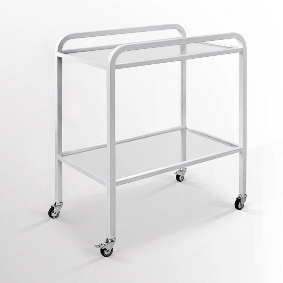 UBM SZ Stolik zabiegowy na kółkach, półki ze szkła hartowanego i kółkami z blokadą