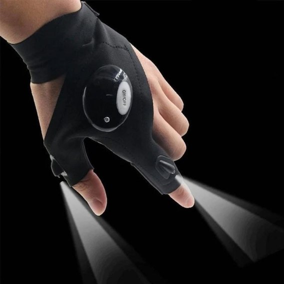 Rękawica LED przeznaczona dla osób ceniących sobie komfort pracy. Rękawica jest elastyczna i antypoślizgowa. Dzięki niej możemy sobie samemu oświetlić miejsce, do którego kierujemy rękę. Idealna jest na nocne połowy ryb, podczas biwakowania, pracy w garażu, piwnicy, w warsztacie, pływania łódką, jazdy na rowerze, itp. Latarka wyposażona jest w dwie diody LED - jedna na palcu wskazującym druga na kciuku.
