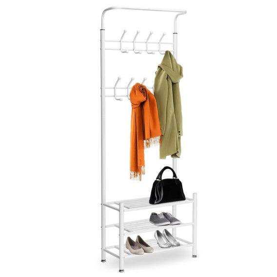 Wieszak do przedpokoju Ramos to nowoczesne, wielofunkcyjne rozwiązanie, które idealnie sprawdzi się w każdym wnętrzu. Dzięki starannemu wykonaniu i przemyślanemu designowi, pomaga utrzymać porządek, zapewniając jednocześnie elegancki wygląd. 2 rzędy haczyków oraz 3 pojemne półki umożliwiają wygodne przechowywanie odzieży, butów i akcesoriów, dzięki czemu Twój przedpokój zawsze będzie schludny i uporządkowany. Regulowane nóżki wieszaka ułatwiają dostosowanie do nierównych powierzchni, co zapewnia stabilność, a wysoka jakość materiałów gwarantuje trwałość i solidność.