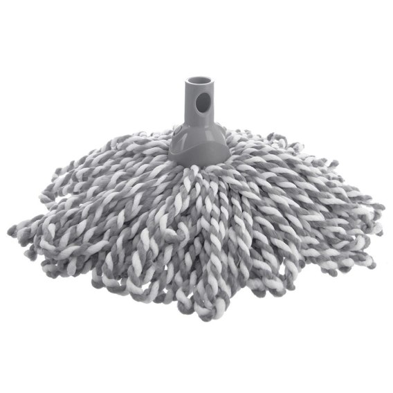 Frędzle skutecznie zbierają kurz, brud i nadmiar wody, ułatwiając sprzątanie i pozostawiając powierzchnie czyste. Wykonane z mikrofibry w biało szarym kolorze. Element mocujący mopa wykonany jest z tworzywa w szarym kolorze.