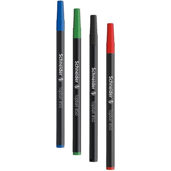 * SCHNEIDER - 7 września 1938 roku Christian i Erwin Blum założyli spółkę jawną Blum & Schneider OHG i fabrykę śrub i części toczonych w Tennenbronn w Schwarzwaldzie - w tym samym roku w Ameryce zostaje wynaleziony długopis - poznanie wynalazku długopisu dało firmie Schneider impuls do rozpoczęcia produkcji własnych wkładów - jakość ?dobrych wkładów Schneidera? pomogła długopisowi w dokonaniu przełomu na rynku i firmie Schneider w zajęciu pozycji wiodącego producenta wkładów do długopisów w roku 1954 - w roku 1993 firma wprowadza na rynek długopis K15 - od tego momentu wypiera konkurentów z czołowych miejsc na niemieckich listach najlepiej sprzedających się produktów - jeszcze dziś jest Niemczech najczęściej używanym długopisem swojego rodzaju, eksportowanym do ponad 130 krajów - w 2007 roku Schneider rewolucjonizuje rynek długopisów prezentując pierwszy ?Slider? - długopis, który dzięki wyjątkowej, specjalnie dla niego opracowanej technologii ?Viscoglide? zapewnia szczególną miękkość pisania (technologia VISCOGLIDE? pozwala na wyjątkowo łatwe i płynne pisanie bardzo grubą linią (XB) - pismo nieusuwalne zgodnie z normą ISO 12757-2 (norma ISO 12757-2 ustanawia minimalne wymagania jakościowe dla długopisów (napełnianych lub nienapełnianych) oraz wkładów do użytku dokumentacyjnego))
