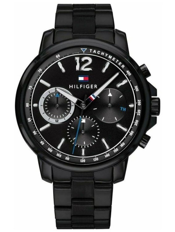Zegarek męski TOMMY HILFIGER 1791529 model tego zegarka to doskonały wybór do codziennych oraz eleganckich stylizacji. Nowoczesny design daje szerokie pole manewru z kolorystyką i charakterem strojów, do których zostanie dobrany. Ten model posiada stylową kopertę w czarnym kolorze, do której dopasowana została czarna bransoleta. Tarcza w kolorze czarnym wykonana wysokiej klasy stali szlachetnej, odpornej na korozję. Urządzenie wyposażono dodatkowo w sub-tarcze czasu 24h, tachymetr oraz luminescencyjne wskazówki i indeksy, umożliwiające odczytanie godziny nawet nocą.