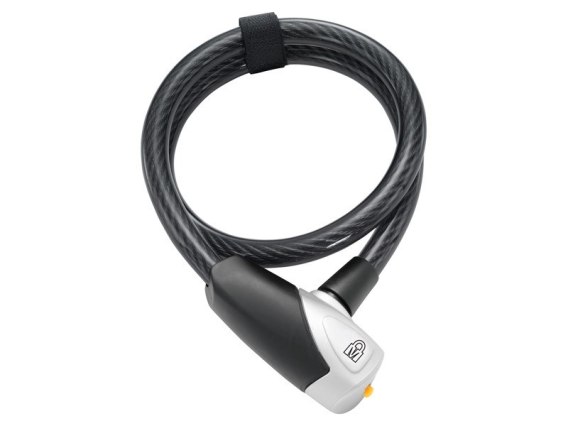 Stalowa, pleciona linka odporna na przecięcia i piłowanie. Gruba osłona winylowa chroni przed upadkami i obtarciami. Dołączony pasek na rzep pozwalający spiąć skręconą linkę.