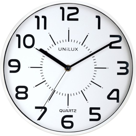 * Zegar ścienny z kwarcowym mechanizmem. Cichy mechanizm nie zakłóca koncentracji. Szklana tarcza i rama wykonana z białego tworzywa ABS.