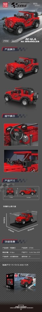 Zestaw 414 klocków konstrukcyjnych do samodzielnej budowy czerwonego samochodu terenowego. Zabawka przeznaczona dla dzieci od 8-go roku życia. Klocki i elementy autka wykonane zostały z wysokiej jakości, wytrzymałego tworzywa sztucznego ABS. W zestawie dołączono instrukcję obrazkową i ochronną gablotę z przezroczystymi ściankami, idealną do ekspozycji. Układanie klocków konstrukcyjnych rozwija u dzieci zdolności manualne, wyobraźnię przestrzenną i cierpliwość. Specyfikacja: - zestaw 414 klocków konstrukcyjnych, - wykonany z wysokiej jakości plastiku ABS, - wierne odwzorowanie prawdziwego samochodu, - przeznaczony dla dzieci od 8-go roku życia, - możliwość ozdobienia auta naklejkami z zestawu, - przezroczysta gablota do ekspozycji kolekcjonerskiej w zestawie, - instrukcja obrazkowa w zestawie. |