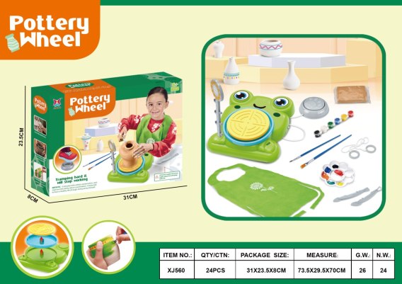 Zestaw małego garncarza to edukacyjna zabawka do samodzielnego robienia oraz malowania ceramicznych naczyń, dla dziecka od szóstego roku życia. Dziecko może zrobić swoje własne doniczki, kubeczki czy dzbaneczki, a następnie je ozdobić farbkami według własnego pomysłu. Koło garncarskie obraca się w dwóch prędkościach, wolniejszej i szybszej. Zabawka pobudza wyobraźnię, rozwija umiejętności zręcznościowe, manualne i plastyczne. Zasilanie kabel typu C napięcie nie większe niż 5V.