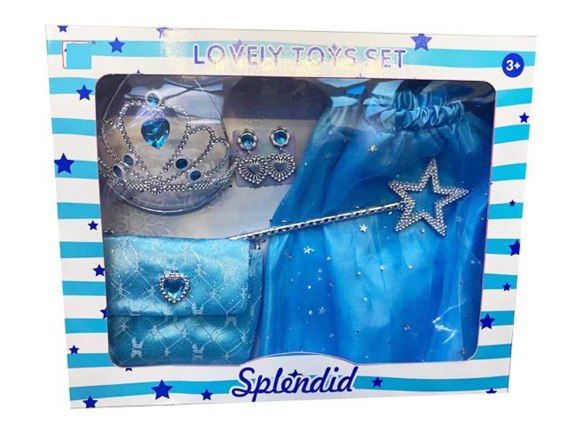 Znakomity zestaw, strój dla małej księżniczki od 3-go roku życia. W skład zestawu wchodzi tiara, magiczna różdżka, kolczyki, torebka oraz spódniczka. Zestaw wykonany został z dbałością o szczegóły w pięknym niebieskim kolorze. Funkcje zestawu: - odpowiedni dla dzieci powyżej 3-go roku życia, - wykonany z dbałością o szczegóły, - bogato wyposażony, - idealne przebranie na bal karnawałowy. |