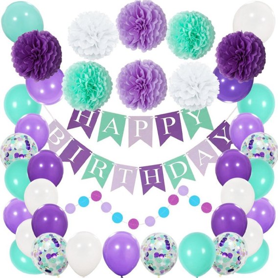 Zestaw dekoracji , balonów urodzinowych - zielono fioletowy