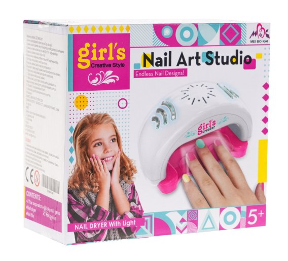 Bezpieczny, interaktywny zestaw dla małej manikiurzystki od piątego roku życia. Zestaw zawiera wszystko, co niezbędne do wykonania manicure. Suszarka do paznokci naprawdę suszy paznokcie oraz wydaje odgłosy suszenia, a jej górna część podświetlana jest lampkami, zasilanie - 2 x AAA 1,5 V (brak w zestawie). Lakier do paznokci jest bezpieczny i nietoksyczny, usuwa się go bardzo łatwo po skończonej zabawie. |