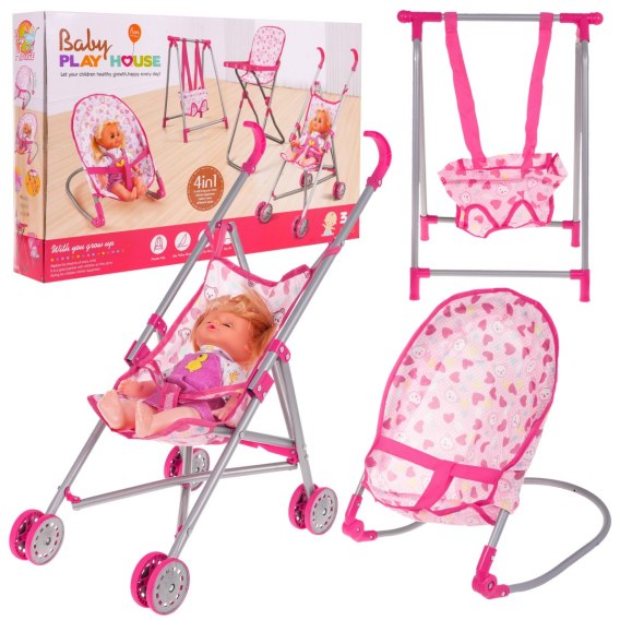 Zestaw dla lalek 3w1 to propozycja dla dzieci od 3-go roku życia. Zestaw składa się z bujaczka, huśtawki oraz wózeczka spacerowego. Zestaw wykonany został w żywych kolorach, z najlepszej jakości materiałów. |
