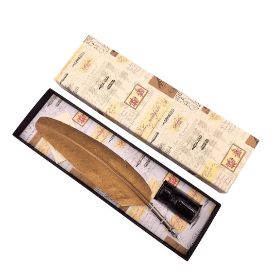 Zestaw do kaligrafii - Złote pióro gęsie ze stalówką + tusz - 7262