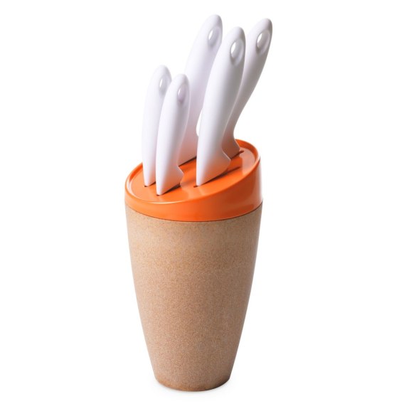 Zestaw noży w bloku w kolorze pomarańczowym z kolekcji Ecoliving. Linia Ecoliving jest odpowiedzią na problem dotyczący projektowania i produkcji produktów w zgodzie ze środowiskiem naturalnym, która sięga do innowacyjnych materiałów i procesów produkcyjnych. Z tą przyjazną środowisku zastawą przygotujesz pyszne jedzenie w zupełnie inny kolorowy sposób - w naczyniach będących połączeniem drewnianego włókna z materiałem syntetycznym. Ta mieszanka naturalnych składników z tworzywem sztucznym przekształca każdy z produktów kolekcji w unikalne okazy rzemieślniczego kunsztu. Produkt wykonany we Włoszech. Materiały: akryl, PP - drewno (kompozyt drewna z recyklingu), PP. Produkt nie zawiera melaminy i jest BPA FREE. Jest przyjazny środowisku i poddający się recyklingowi. Nie przyswaja i nie przenosi zapachów. Można myć w zmywarce, jednakże zaleca się mycie ręczne ze względu na możliwość zmatowienia powierzchni, co nie podlega reklamacji.